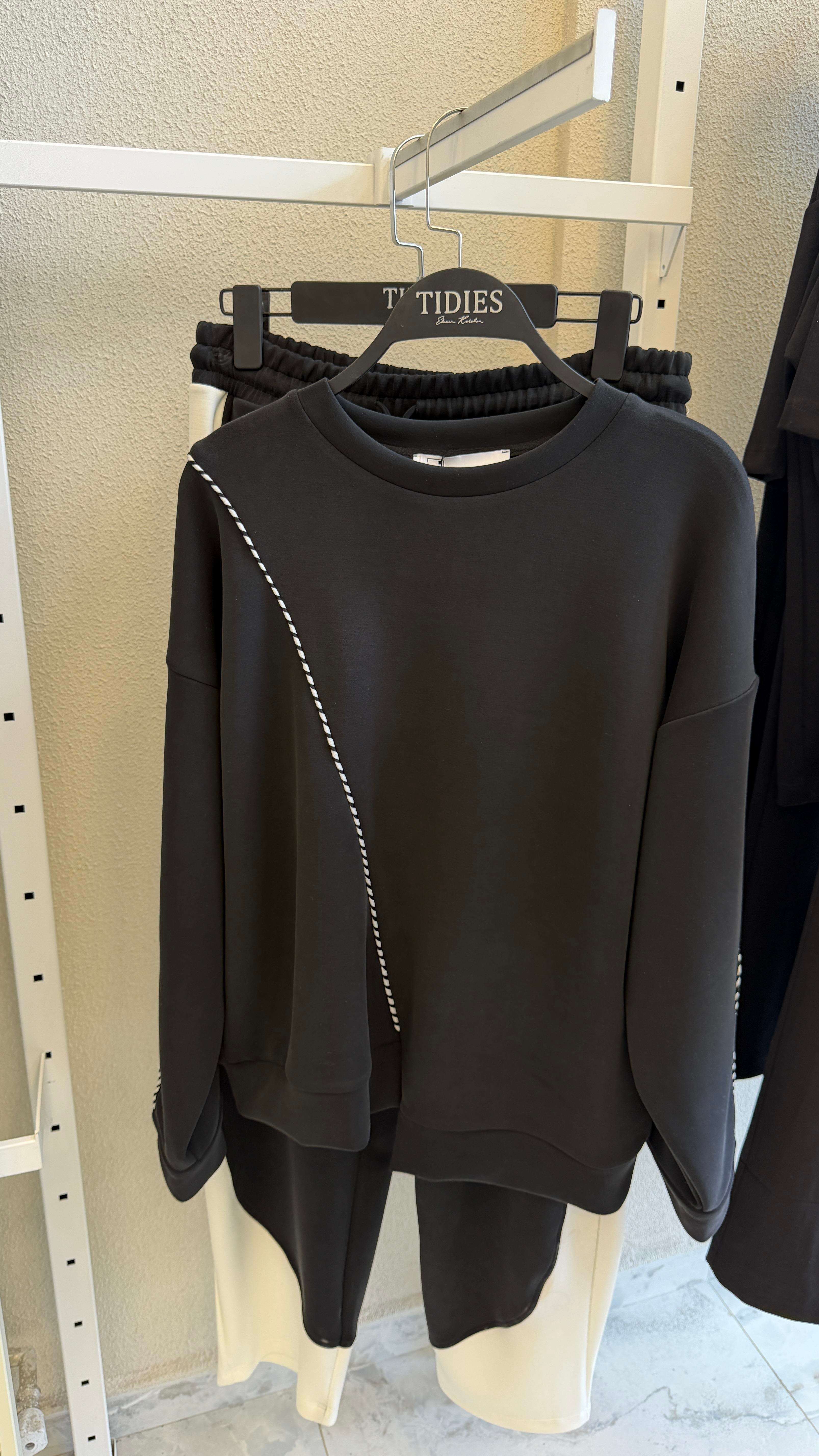 Şeritli Siyah - Beyaz Takım